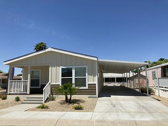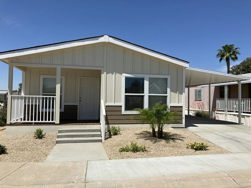 55+ age qualified community. From the relaxing front porch to the spacious living room with tiled entryway, you will fall in love with this home! The dining room is the perfect place to enjoy a family meal or game night with friends, and the spacious kitchen provides you with plenty of counter and cabinet space to store all of the things you will need to prepare a meal. Your new energy efficient appliances and the vinyl siding on the exterior of your home also help to keep your utility costs down. This gorgeous home has three bedrooms! The master bedroom features a private en suite bathroom, and there is a second, spacious main bathroom to accommodate friends and family. Want more? The community is full of amenities for you to enjoy as a resident. From a plethora of events and resident activities held in the banquet hall, to the full sized pickleball court, beautiful and spacious community pool and spa, putting green, onsite laundry facility and RV storage there is plenty for you to enjoy each and every day. Don't waste another minute - call now to schedule your tour!