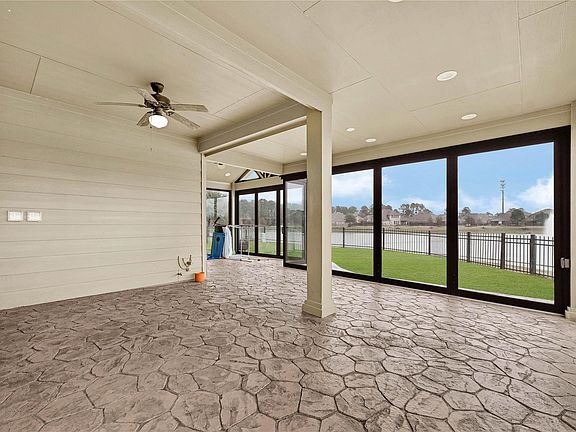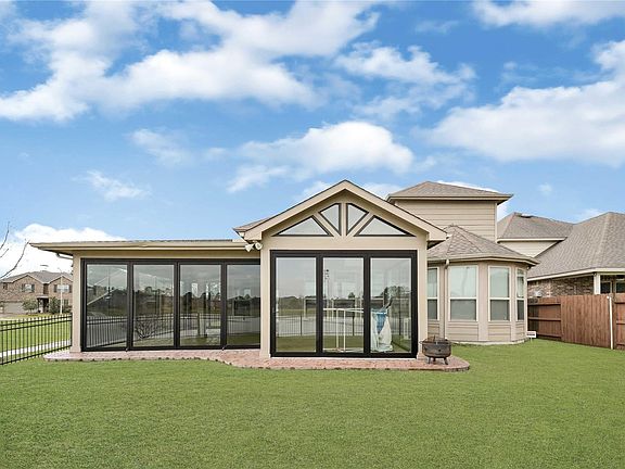 This beautifully updated 5-bedroom corner home + a flex room (perfect bedroom/office/den) & 3 bathrooms offers modern comforts & waterfront views w/direct access to the scenic lakeside walkway that leads to the elementary school. Standout features include a weatherproof glass-enclosed patio w/AC, AC-equipped garage w/shelving & customized laundry room w/washer & dryer. Kitchen includes all appliances & boasts a new smart cooking range, smart Bosch dishwasher & under-sink water softener/purifier complementing the house filtration system. Additional perks include a work area, 2nd floor living area, modern chandeliers & fandeliers & motorized shades in bedrooms. The backyard is perfect for garden lovers w/a newly built raised bed & features a sprinkler system. Enjoy resort-style amenities including a gym, pool, clubhouse, tennis, basketball & pickleball courts, walking trails & boating and fishing in the parks. Schedule your visit & experience all this exceptional home has to offer!