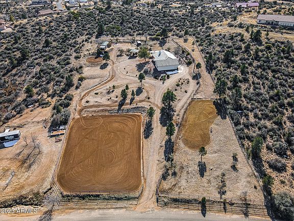 HORSES WELCOME! Gorgeous 3+ acres of usable property and stunning mountain views in beautiful Peeples Valley, AZ. Meticulously kept arena and round pen will provide bragging rights and an opportunity to ride without leaving home. Barn includes stall, covered paddock, large tack room and a hitching post / wash rack. Other fenced / crossed fenced areas allow for amazing usability and versatility. And while this land is perfectly suited for animals, there's much to be excited about for the humans too! Pride of ownership is evident in this beautiful home with open floor plan and great room layout. Kitchen is large with abundant cabinet space and new counters. Dining and living room windows bring warm, natural light in for a cozy feel. ** CLICK MORE FOR ADDITIONAL DETAILS!!! ** Oversized owner's suite with newly remodeled bathroom and an exterior door to large, covered, rear patio. Inviting front courtyard area with bubbling fountain and terraced landscaping is private and peaceful. RV Hook Up w/ 30 amp electric & water. This home and property has so much to offer. Peeples Valley is a charming community with 4 mild seasons, beautiful pines, cool mountain breezes and blue skies. Wildlife is plentiful. Most days you'll catch sightings of deer, javelina and cottontail rabbits among many others. Just about 45 minutes from both Wickenburg and Prescott, access to a variety of shopping and entertainment is easy. Phoenix is just about 1.5 hours away. Country livin' and peaceful surroundings await. **Aerial and interior walkthrough video in second slide of PHOTOS tab**