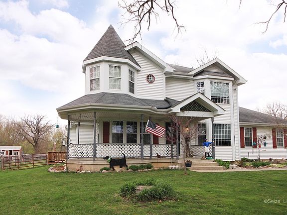 Nice 2 story home on 5.26 acres. Barn with stables and paddock. River location. Charming house, three bedrooms two full baths on 2nd floor. Setting area in Master bedroom, master bathroom with large walk in shower. Large family room sliding doors to patio: Dining room windows bow type gives you a great view, Eating area between kitchen and large family room, enjoy the elect fireplace, full basement unfinished. Bring your toys or your animals, River runs through the property not where the house is, maybe you can go fishing. Location is awesome hideaway but main highways near by. Mins to full I 90 exchange, Crystal Lake Woodstock for train, Elgin, Rockford easy to get to and even enjoy Lake Geneva with in 25 min. Can't get any better than this (silos in the picture are on the property to the east)