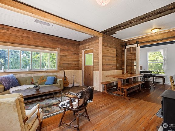 Perched atop Bow Hill in highly desirable Skagit farmland is this 3.89 acre historic farm and vacation rental. Private 300 ft well. Main house built in 1910, partially remodeled. New copper plumbing, modern electrical wiring, newer insulation in the basement, newer water heater. Vintage cast iron wood stove is main source of heat for both dwellings. 2 bedrooms upstairs, small sitting room and extra- large attic. Main bedroom and bathroom downstairs. Restored vintage windows, original fir shiplap and flooring in great shape. Farmhouse kitchen, original cast iron sink. Cold porch/laundry room with tons of storage. Original woodshop remodeled into a successful AIRBNB unit garnering around $2000/mo. Sunset views from second growth cedar grove.