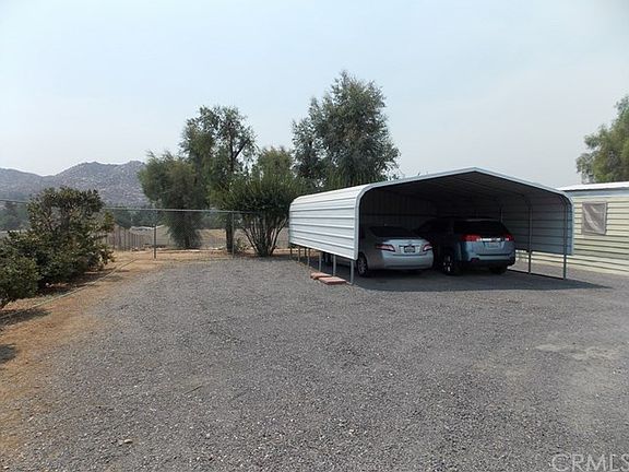 Unique opportunity awaits with this mobile home (not on permanent foundation) sitting on premium size .80/acre (34,848 square feet) lot! Double wide is 64 x 24 = 1536 sqft with 3 bedrooms & 2 bathrooms. HOWEVER in 1975 the owner did manufactured "Cabana" add on when they purchased the property and mobile home which adds anther 300 square feet including a 4th bedroom and brings the total square footage to approximately 1836 square feet. Interior is original but very spacious and in good condition with a kitchen w/large island, new stainless steel appliances including a double oven & gas range, updated AC, separate living & dining rooms, and family room area too with classic stove fireplace! Owner moved laundry area outside to make more room for pantry but could be changed back. Outside there are multiple large sheds, and a 2 car carport too! Horses allowed here and there gated alley access at the back of the lot which is perfect for bringing them in and out. Lots of opportunity here and room for more improvements! Home sits right on Cajalco with a circular driveway and is walking distance to the local market. Utilities all at property and is connected to natural gas, electricity, district water, and private septic. Diesel generator included and should work... owner has not used in several years.