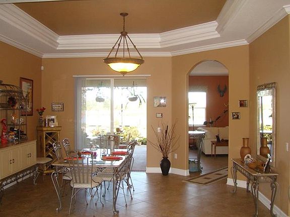 This magnificent one acre lakefront home has 2424 square feet, 3 bedroom, 2 baths, den, and 3 car garage with an over sized driveway for additional parking. While entering this beautiful home through the double leaded glass doors, you'll notice the welcoming foyer and large living room with lighted tray ceilings and crown molding. Additional features are the oversized diagonal tile in all the main living areas, the dens double glass french doors, 5 1/4 base boards throughout the home and crown molding in the living and dining room, den and master suite. The beautiful kitchen has stainless steel appliances, large wood cabinets and granite counters with an oversizes bar for all your friends to enjoy. The large master suite features a tray ceiling with crown molding. The master bath has a large garden tub with separate roman shower, water closet and 2 separate sinks. Relax sitting on your oversized screened lanai with ceiling fans overlooking a large pond and spacious back yard. The home has a fenced dog run and dog doors so the dog can come and go as he pleases or just lock them when needed. This home is very well taken care of and a must see. Enjoy the country living just minutes to shopping.