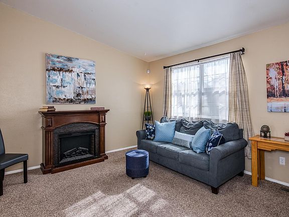 Come see this wonderful starter home on a corner lot which has a nonconforming 3rd bedroom because of no closest, but makes a great office or nursery. The south facing lot provides lots of natural sunlight and a fast melting driveway. Extend your living space under the 20'x12' covered patio. The living room features an electric fireplace which serves as a nice piece of furniture and can remain with the property as buyer wishes. All appliances included along with a 1 year Buyers Home Warranty. This home is in the desirable Cherry Creek School District. New roof being installed.