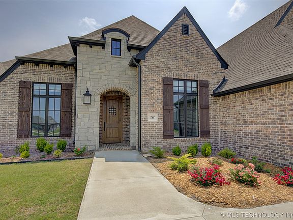 Welcome to 17807 S 46 East Avenue in the highly desired community of Magnolia Heights. This beautiful two story home incorporates a variety of upgrades, such as granite counters, stone fireplace, conferred beams, white oak hardwood flooring, custom cabinets, unique modern lighting, spray foam insulation, A-frame patio, window coverings and oversized parking pad with 3 garage garage. The floor plan is open concept with ample windows permitting an abundance of natural light throughout. The lower level provides an office, formal dining room, the primary suite with oversized walk in closet (17.8 x 11) and 2 additional bedrooms connected by a jack and Jill bath (separate vanities on each side). The spacious upper level accommodates a 4th bedroom with walk in closet, a full bath and large bonus room. The backyard is private, has ample sitting areas and is already completely fenced. Conveniently located in the Bixby School District.