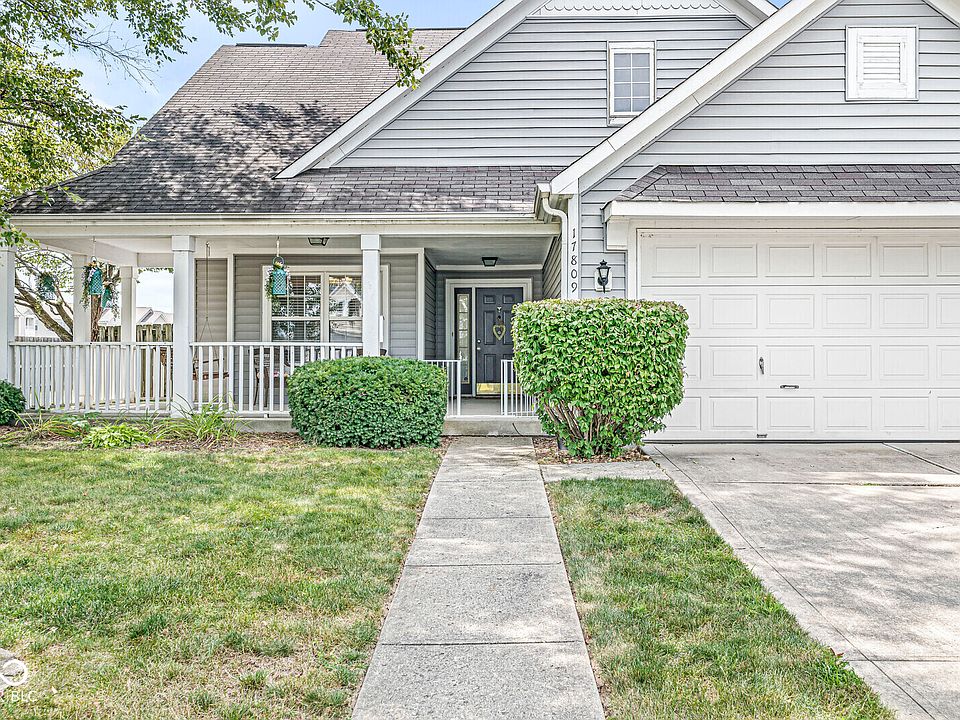 Welcome home to this rare 2 bedroom, 2 bath, single family home in Pinehurst Village. From the large wrap around front porch to multiple wood decks, this home offers an abundance of outdoor living space. New siding gives the home a fresh new look. As you walk into your new home, you will immediately notice the vaulted ceilings and wood burning fireplace in the open living room. Kitchen features granite countertops and ALL new stainless-steel appliances. You will appreciate the new premium low maintenance laminate flooring throughout the home. Primary bedroom has large walk-in closet and bathroom ensuite with dual vanities. Back yard is fully enclosed with privacy fence and 300 sq ft of deck space to entertain. Located near major shopping, restaurants and Pebble Brooks Golf Club. Home is in highly rated Noblesville School System.