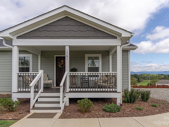 Charming one-story home surrounded by almost 360 degree beautiful mountain views. This home features a sweet covered front porch, large back deck with spectacular mountain views, gently sloping big back yard with a nice cozy firepit. Inside, the open floor plan boasts vinyl plank flooring, spacious kitchen area with lots of counter space, a large island, beautiful cabinetry, nice Blanco double basin SILGRANT sink, stainless steel appliances as well as a fantastic open living space. The primary bedroom suite includes a large closet as well as the primary bathroom with dual vanities and extra storage space. 2 other bedrooms offer excellent space with their own large closets. Don't miss this amazing opportunity in a gorgeous setting with convenient amenities just 20 minutes from downtown Asheville or downtown Weaverville.