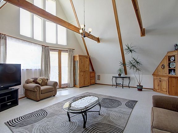 Look no further! Your future home is this beautiful, spacious A-Frame with 3 Bedrooms and 2 Bathrooms. Big front yard with gazebo surrounded by established rush bushes is perfect for relaxing after a long day. Main level has very spacious Living Room with vaulted ceiling and beautiful wood beams, and lots of windows offer amazing natural light. Upper level Bedroom and Loft each have private decks! Partially-finished basement is ready for your creative touch. Big back yard with greenhouse and shed, are perfect for kids and pets to roam and play! Oversized 4-car garage, and extensive parking in front! Must see! Call now to whedul your personal showing!