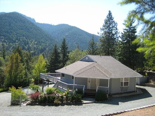 Country seclusion just 2 miles from town! Custom octagon design home makes good use of space. Lots of built-in storage, 10 ft??? ceilings downstairs, large wrap around deck with hot tub and fabulous views, 2 + secluded acres on city water, 2 car garage and large RV barn.