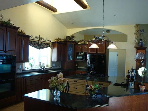 This dream come true, one of a kind custom built home as it all!! With over 7,000 sq.ft. of living space, gorgeous views and sunsets, this 5 bedrooms, and 4 bath home has engineered gun-stock oak hardwood floors, Cambria counter tops, Minka Laverty Belcaro Collection lighting, and a wonderful spa room. Wonderful custom kitchen with double ovens, built-in hutch, spacious master bedroom with walk-in closets and master bath with jetted tub and shower. Main floor laundry and plenty of built-in storage areas. The basement offers another family room area and great spot for a theater room, 2 finished bedrooms and a bath. With 9 ft ceilings you don't even know you are in a basement. Great walk-out area to a covered patio and well manicured yard with perennials, full sprinkler system and plenty of RV parking