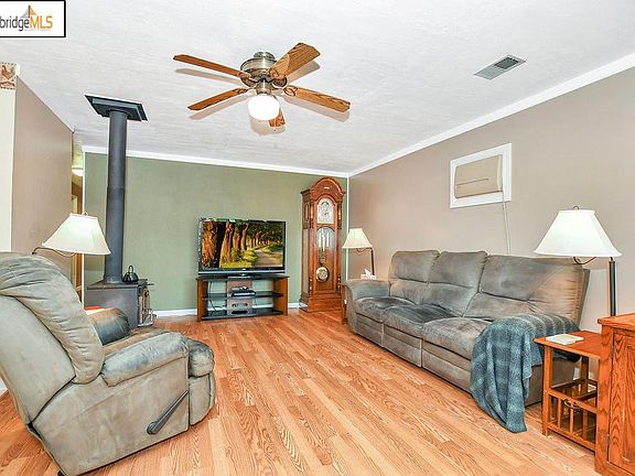 First time homebuyers don't miss this great opportunity! Quiet street location in the heart of Oakley! Professionally landscaped front yard with beautiful curb appeal. Room for seating on the relaxing front porch. Laminate floor in living areas with a cozy free standing wood burning fire place. Double paned windows throughout. Neat and spacious backyard with room for RV/boat parking. Spa and storage shed included. No rear neighbors! Close to downtown and shopping!