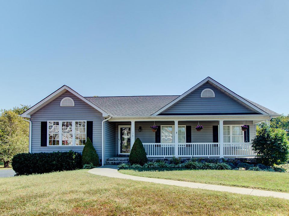Beautiful stone and vinyl ranch w/ vaulted ceilings, rocking chair front porch, 2.25 acre lot on a cul de sac. Hardwood floors, walk in closet, walkout finished basement, 2 car garage, new trex decking