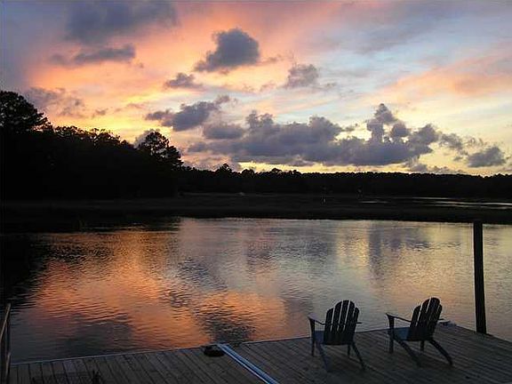 ''We've loved every minute in our 5 year old, custom designed cozy home with an elevator, beautifully situated on deep water (4' @ low tide). There are black walnut hardwood floors on the main level, stainless steel appliances, back splash tiles designed by Natalie Blake, kitchen countertops made from Shellstone, a type of Limestone that has fossilized shells embedded in it, solid wood doors, etc. The tongue and groove back porch is over 600 square feet and overlooks Yellow House Creek on Wadmalaw Island. The property is the essence of the lowcountry. We share the live oaks, palmettos and wax myrtles with the great blue herons, egrets, painted buntings, pelicans and hawks that call it home also. Walking out on the shared dock to the pier head is inspirational-you are surrounded by... oyster banks, marsh grasses whose color changes with the season, crabs scurrying along the bottom, and dolphins that swim under the walkway as you pass overhead. On the 20x20 covered pier head, you are moments away from hopping in your sailboat, powerboat, kayak or paddleboard to explore the surrounding waterways; or stay at the dock and fish, cast for shrimp, crab off of the floaters, and watch for dolphins strand feeding less than 100 feet from your dock."