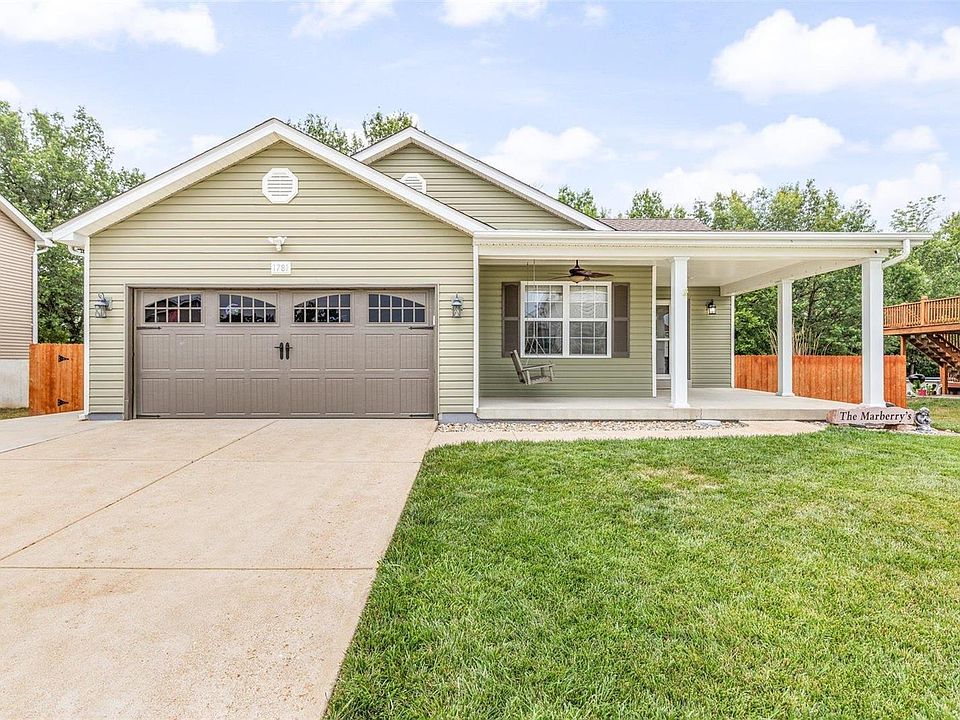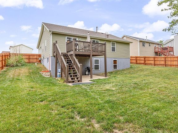 Immaculate. Pride in ownership. Beautifully renovated. There is so much to love about this LAKEFRONT property!! Starting with the dream-come-true garage... Fully finished & insulated, new garage door, AC & Heat, WIFI opener, extra lighting, TV & surround sound. Truly a must-see! Curb appeal galore & check out that huge covered front porch. Double vaulted ceiling makes this Open floor plan feel even larger than it is. Bright kitchen with new SS appliances, center island, & pantry. SO many new updates: 2022 Roof, new water heater, light fixtures & brand new attic fan, and 2 newly remodeled bathrooms... the list goes on! Main floor master with brand new en-suite, new carpet, & walk-in closet. Full basement is your blank canvas. Egress windows, extra storage, full rough-in, walk out. Large deck, covered patio, spacious yard with privacy fence & lighting, plus new shed with electric. Gate opens to your path to the LAKE!! True entertainers paradise.