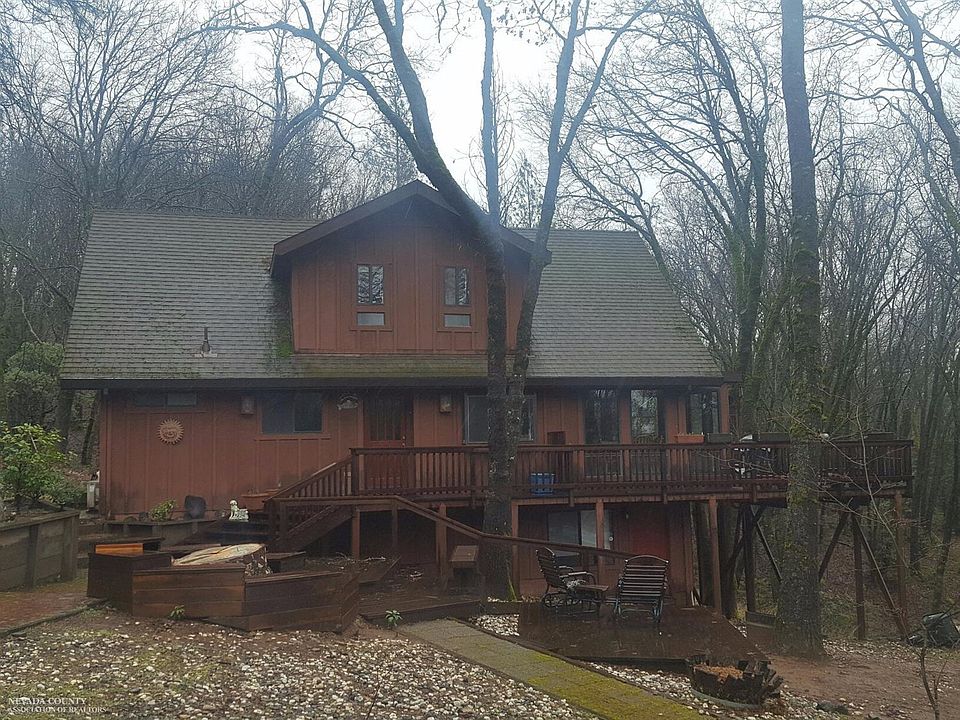 This warm, inviting country home is secluded yet is only 2.5 miles to historic Nevada City. Lots of windows let the forest it with abundant decks for entertaining. The main house is 3/2 with an additional 1/1 in-law quarter down below. The oversized garage has a full bath and wood stove downstairs anda finished room upstairs. Great game room teen hangout or ?. The upstairs room in the garage and the in-law quarter are not counted in the SF. Generator is hard wired into the home.