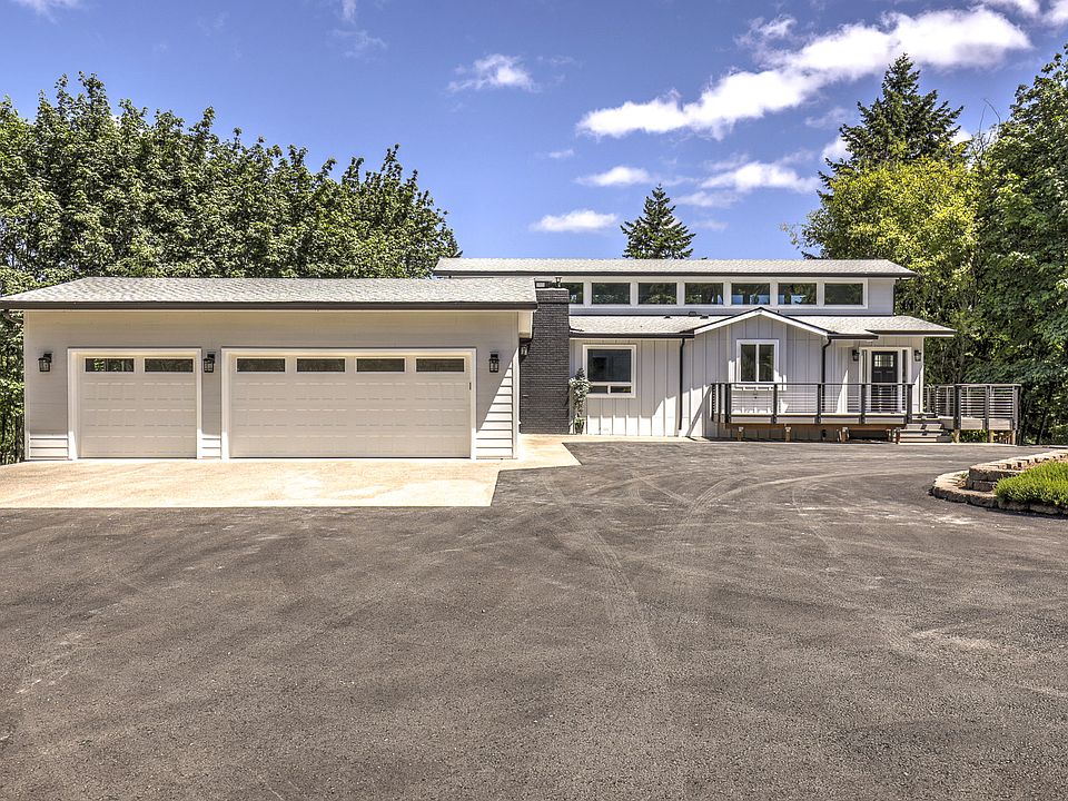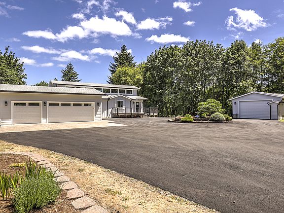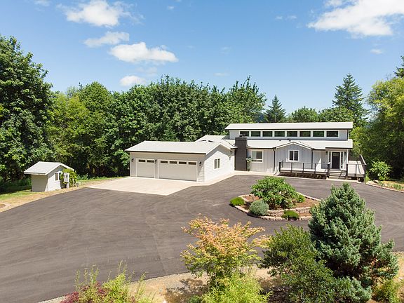 Stunning down to the studs North Plains remodel! Property has 2 tax ID's for over 13 acres. Home sits on top of ridge overlooking the valley from grand rebuilt deck entertainment setting. Home is a 5 bed / 3 bath with 5 car garage, including large shop, new driveway & asphalt on front wrap around courtyard. All new interior and exterior roof, siding, drywall, plumbing, electrical 2 ht pumps, ducting, furnace, quartz counter tops.