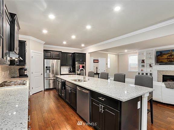 Pride of ownership throughout this nearly new, original owner, 2 story home in Bothell. Upgrades in home include hardwood floors downstairs, granite counters, stainless steel appliances, and oversized island in kitchen. Custom built-ins in living room and master closet for extra storage. Master suite with large walk-in closet and 5 piece en-suite. Private lot backs to a green space and features an outdoor gas fireplace great for entertaining.