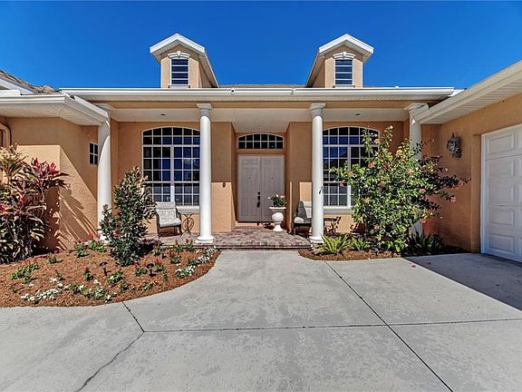 Absolutely Amazing Custom Home with a solar heated, salt water pool - great for entertaining or raising a growing family! Located on one of the best 1 acre waterfront lots in all of FoxBrook. This exquisite 4 bedroom, 4 bath, home w/ office reflects comfort and relaxation throughout. From the comfortable porch to the amazing long lake views, take a dip in your pool or just relax on the screened enclosure and watch nature go by. Upgrades in this elegant property includes a completely remodeled master bath, a wood burning fireplace, crown moldings, stainless steel appliances, new s/s range, new hot water tank and a new Ruud A/C System! Other features include brick paver front porch, porcelain tile, quartz counters and backsplash, fiberglass front doors, ceiling fans, water softener, outside security lights, kitchen cabinet pull-outs, new interior paint throughout & master closet built-ins. All of the space and finishes any discriminating Buyer expects. The Master Bedroom, Living Room, Kitchen and Breakfast Nook have fantastic views of the huge lake! The oversized 3 car garage has plenty of room for vehicles and toys. Don't worry about watering the grass on this large lot, there is already a private well for your irrigation system. FoxBrook also features a basketball court, a soccer field, a fun park and playground for little ones and bike paths throughout. This home is easy to show and a true pleasure to see. Hurry before it's gone!!!