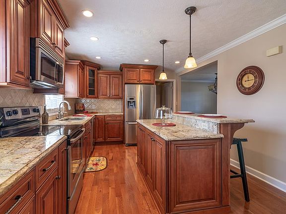 There is lots to love about this two-story home on two level acres, conveniently located between Abingdon and Bristol. Enjoy pastoral views from the covered front porch, along with lovely natural and professional landscapinig. The back yard offers a partially wooded, semi-private park-like setting with a storage shed and fire pit. The entire home has been updated including new kitchen with granite counter tops, island, custom cabinets, stainless appliances, new interior doors throughout, crown molding, new hardwood floors and remodeled bathrooms. The gas log fireplace and unique reclaimed wood wall make the huge GREAT ROOM an ideal spot for entertaining family or friends. The large, open, walk-out basement can be used for many purposes, can be accessed from inside the home or from a separate back entrance, and includes a half bathroom. The two-car, main level attached garage provides ample room for cars and additional storage, plus an outdoor storage building for lawn mower and tools.