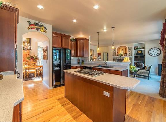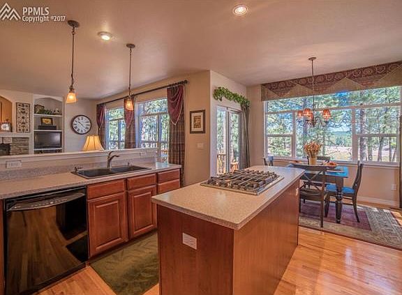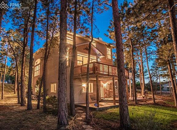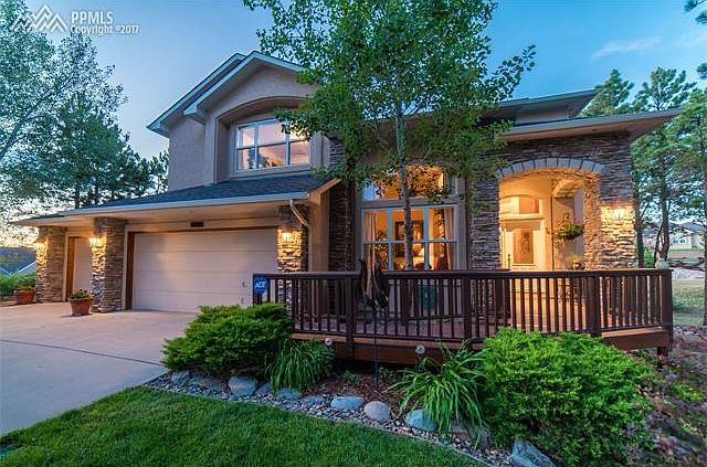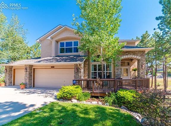 EXQUISITE FORMER MODEL HOME! You'll love the Covered Arched Entrance and the feeling of being in a Luxurious Mountain Resort, but only minutes from I-25. Custom Two-Story Home on Corner Lot boasts an Open Floor Plan, Soaring Ceilings and Stunning Upgrades! Double-sided Stone Fireplace sets off the Warmth of Living Room and Office (or Bedroom) with a Wall of Windows to enjoy the Beautiful ? Acre Treed Lot on cul-de-sac! Gourmet Kitchen with Gas Range in Island, Cherrywood Cabinets and Eat-in Kitchen opens to Spacious Deck! IMPECCABLE AND UNIQUE!Step down the Spiral Staircase to the Stamped Concrete Patio to Enjoy the Beautifully Landscaped Backyard and Gas Fire Pit Perfect for Outdoor Entertaining! Exudes Elegance with Gorgeous Hardwood Flooring! Formal Dining Room! High Vaults! Custom Window Treatments! Wrought Iron Railings and Upgraded Lighting! Upper Level features Large Master Suite with French Doors, 5-piece Master Bath with Walk-in Closet, and Two Additional Bedrooms with a Jack-n-Jill Bathroom with Granite! AC on Upper Floor! The Basement is a Private Retreat with a Gorgeous Stone Wet Bar with Glass Shelves, Wine Racks and Granite Countertops! Ideal for Entertaining with Stoned Wall Gas Fireplace, Built-in Cabinets, a Spacious Recreation/Family Room and Walk Out to Serene Mountain Resort Living! It is Truly One of a Kind where you can Relax in your own Habitat featuring a Sauna, Steam Room and Spa-Like Bathroom with Granite Countertops! Mirrored Work Out Room (or Bedroom)! Upgraded High Efficiency Lennox Furnace and Humidifier! Spacious Three Car Garage for Vehicles, Toys and Storage! Locking Mailbox with Brick Accents! The Large Driveway provides additional parking for Your Guests! Primo Location for Folks Commuting to Denver and Colorado Springs! ONE OF A KIND!