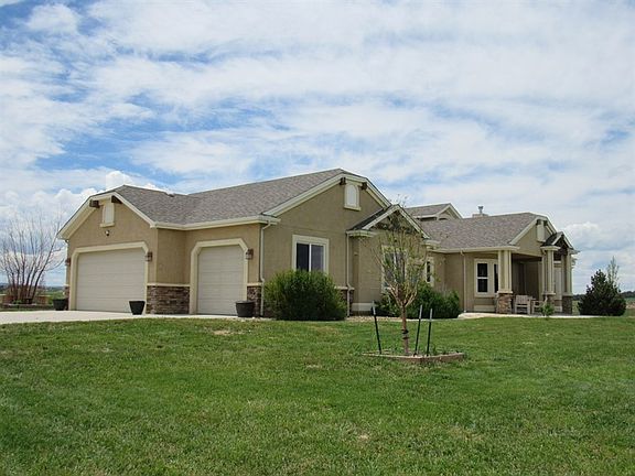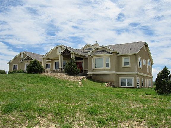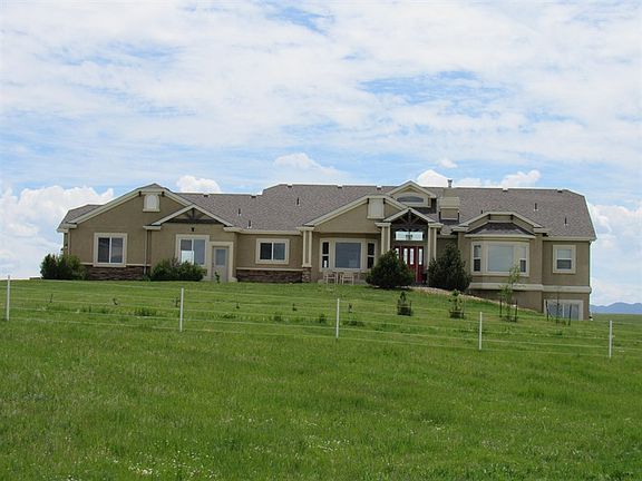 Beautiful Custom Home/Equestrian Property with stunning Pikes Peak views on 40 acres. This amazing horse property has an Indoor Arena measuring 120 x 80 with connecting shed row stalls with runs, tack room and hay storage measuring an additional 120X24. This is the perfect horse property for the equestrian enthusiast with a large Outdoor Arena that measures 165X115 +/-, multiple large paddock areas with loafing sheds for rotation and seasonal pond - Chatelaine Pond. Please Note that this property also comes with extensive Water Rights. This amazing Custom Home comes with an oversized garage that measures 35X29, huge gourmet kitchen/eat-in area that is 27X19 with granite counter tops, double oven/convection, 5-burner gas cook top and gorgeous cabinetry. This amazing 4 bedroom 6 bath home has a large living room with walkout patio that has spectacular views of Pikes Peak along with a massive family room that measures 35X27 +/- with a wet bar that would be great for entertaining. Virtual Tour at http://www.tourfactory.com/1371421