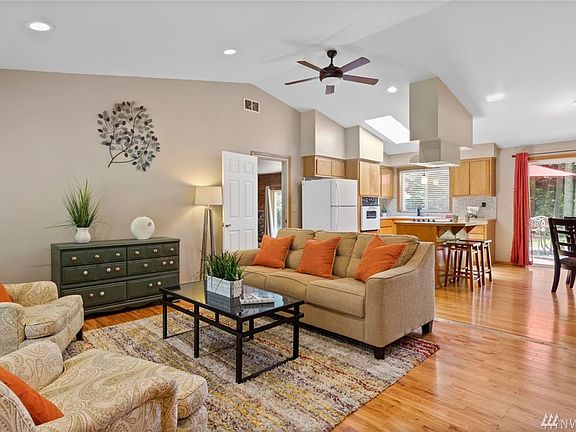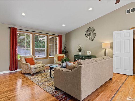 Peaceful country rambler in waterfront community invites you to call it home! You'll love the large, flat lot w/space to play & garden. Enter to vaulted ceilings & an open floor plan, w/skylight & views to the gorgeous back deck. Cheerful country kitchen looks out to scenic back yard. Dining area adjoins slider to sunny deck. Elegant living room PLUS comfy family room w/efficient pellet stove & 3rd slider to patio. Shared waterfront park along the gorgeous Skykomish River. See this one today!