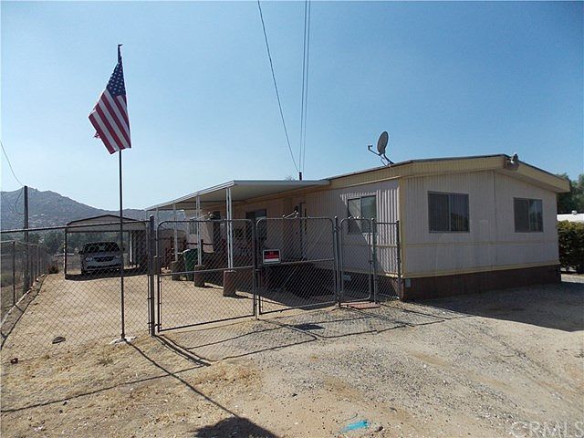 Incredible opportunity with this mobile home (not on permanent foundation) with an in-ground swimming pool in Perris! Resting on a nearly 18,000 square foot completely usable lot this home was built in 1975 and is well kept inside & out with 3 bedrooms, and 2 bathrooms. Other features include a spacious kitchen w/bar and separate breakfast nook (that was previously used as a 4th bedroom), large living room, and an indoor laundry area too! Outside is all fenced in with a in-ground fiberglass swimming pool with a diving board, car port, and gates at the back of the lot for alley access and easier ingress/egress from property! Horses ok but advised to verify with Perris as to any limitations!Manufacturer: SkylineTradename: Cameron