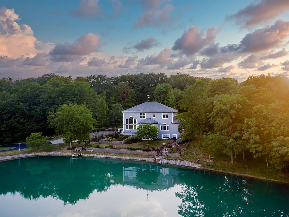 ** Contingent - Taking back up offers ** If you are looking for a grand waterfront oasis with exquisite décor look no further than this well cared for home! Step through the front door into the grand foyer entry and admire the formal living room with soaring twenty foot ceiling. Make your way into the large kitchen with custom cabinetry, granite counter tops, massive island with prep sink and corner walk-in pantry. Kitchen is open concept, offering a clear view into the family room. Large windows in the dining and family room allow for ample natural light and spectacular waterfront views! The main floor primary bedroom suite is a generous size and offers an on-suite bathroom and walk-in closet. Upstairs you will find three additional bedrooms with nice size closets and two full bathrooms. The daylight basement offers an expansive recreational room with updated wet bar, a fifth bedroom, full bathroom and second flex room with several closets. The split four car garage offers plenty of room for vehicles and outdoor equipment. Updates include a new Carrier furnace and A/C for main level and basement, 2-stage zoned system and new main water heater in 2018. The primary bedroom suite bathroom floor is heated and a second water heater services this suite. Enjoy the swimming beach, boating or fishing on a private pond! Located minutes away from Dupont Road development, Parkview Hospital, and I-69. Priced to sell at $749,900!