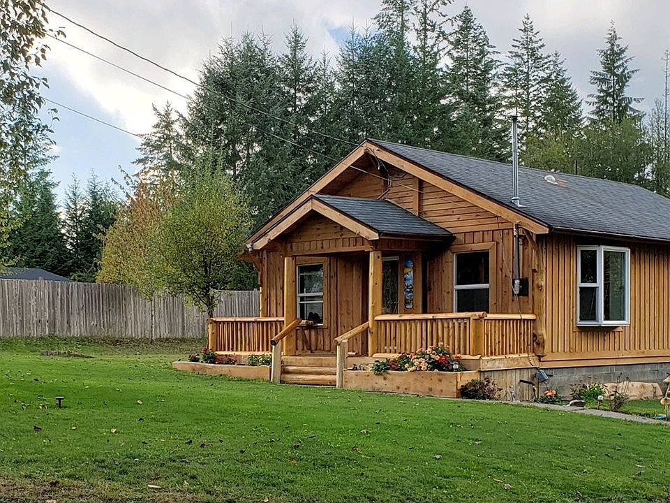 A beautiful cedar sided cottage sits on just over an acre outside the city limits waiting for you to call it home! Large living room w/pellet stove; solar tube in kitchen w/new dishwasher; french doors in dining room lead to a large, private back deck. Bedrooms & living room have hardwood flooring under the carpet. 10x12 detached playroom; 25x60 shop with 14' high garage doors, office, storage space & 12x15 & 12x60 carports & much more!