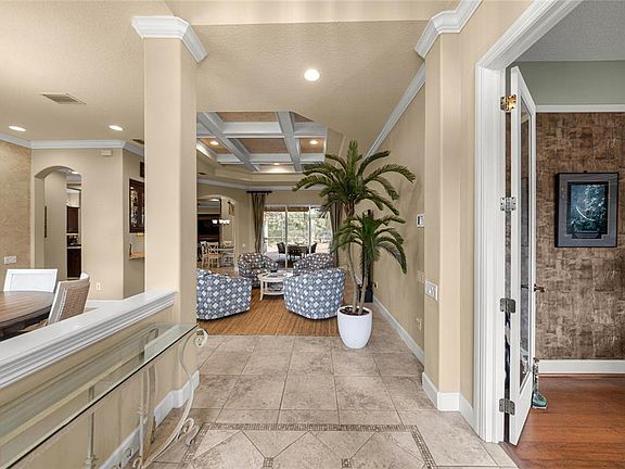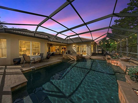 Welcome to Juliette Falls! The community’s award-winning Juliette Falls Golf Club is consistently ranked among Florida’s top public courses by leading publications (GolfPass/Golfer’s Choice), underscoring the prestige and daily enjoyment just beyond your doorstep. Upon approach and entry you will be welcomed with the curb appeal and impressive elegant barrel tile roof, balanced elevations, and a paver driveway/walkway set over a stable base with clean edge restraint. A covered entry and 8' front door open to a light-filled foyer with refined trim and sightlines that pulls you straight to the lanai, pool, and lush backdrop—signature Arthur Rutenberg flow from the first step. The Great Room entry offers seamless indoor and outdoor living. The foyer spills into a spacious great room where large stacking sliders erase the boundary between inside and out. Low/flush thresholds enhance accessibility and style, while Arthur Rutenberg has comfort-first systems design (Manual J/S/D HVAC, sealed ducts, fresh-air strategy) delivers whisper-quiet, even temperatures year-round. Enjoy your chef like kitchen and dining experience that offers premium craftsmanship, quality doors and trim with generous prep and storage along with the granite countertops. Gas service supports efficient cooking; casual dining and a versatile formal/flex dining space frame sparkling pool views for effortless entertaining. The Private Primary Suite is tucked in its own wing. The primary suite captures serene lanai vistas—some plans with easy access for an early morning swim. A spa-inspired bath with an oversized soaking tub, and a tiled shower, dual vanities and quality finishes; a large walk-in closet simplifies everyday living. Split secondary bedrooms offer privacy for family and guests, complemented by well-appointed baths with tiled showers. A dedicated study/flex room supports work-from-home, hobby, or media needs—quiet, refined, and efficient. Thoughtful circulation, balanced natural light, and elevated finish carpentry reflect Arthur Rutenberg curated trades and tighter quality control. This home is built for resilience with a new energy-efficient HVAC that reduces operating costs and boosts comfort; a large-capacity water heater (newer) supports busy mornings and back-to-back showers. A Generac whole-home generator with automatic transfer switch keeps life running during outages. Utilities include water, gas, and electric—plus a personal irrigation well for low-cost landscaping and pool makeup water. A 3-car garage provides offering easy attic access; plentiful closets throughout the home keep everything organized. The centerpiece is the pool and spa—sparkling and low-maintenance with updated systems, including a newer heaters (2), pump, and salt generator—delivering resort-style relaxation at home. Slide open the glass and step onto an expansive screened lanai designed for true indoor–outdoor Florida living. A built-in outdoor kitchen with gas service anchors multiple lounging and dining zones, all planned with positive drainage and a screen structure designed for wind loads. This Arthur Rutenberg premium custom home blends superior construction with resort-style outdoor living and comfort-driven systems—delivering a high-quality, low-stress Florida lifestyle from the moment you step through the door.
