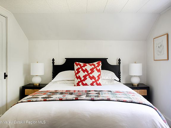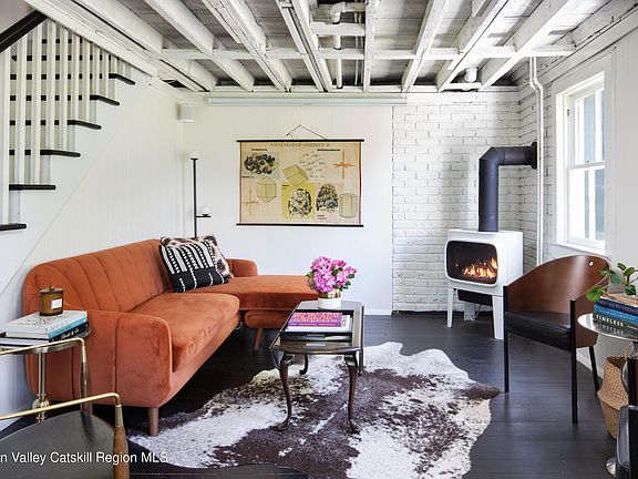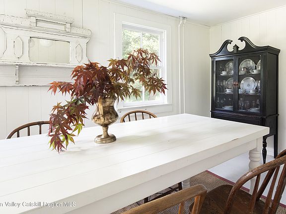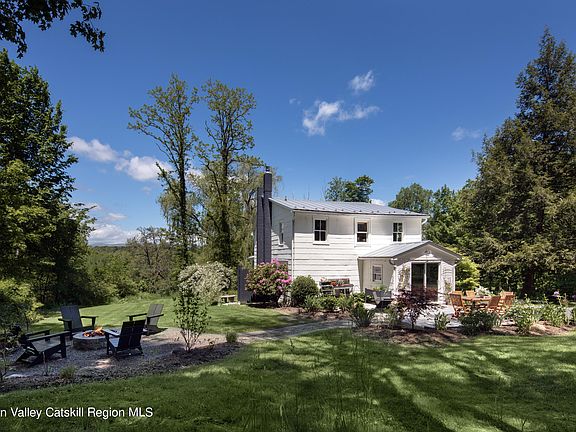 HIGHEST & BEST offers due Tuesday, June 4th at 6pm. Perched on a hill surrounded by woods and with meticulously maintained gardens, Fox Hollow is in its own little world in the tranquil Hudson Valley countryside. With four bedrooms and a blissful patio and open yard, the home boasts ample space for indoor and outdoor living, entertaining, and hosting guests! This warm and enchanting farmhouse really is a dream from the moment you approach the front porch with its rocking chairs and traditional blue ceiling. There is no better spot to unwind and take in the picturesque surroundings, mountain views, and the sound of the seasonal brook that runs through the property after spending your day in the garden or exploring nearby farm markets. The home's interior exudes a welcoming ambiance throughout and features a cozy living room with an elegant Jotul gas stove, a formal dining room that is perfect for memorable gatherings, and an efficient kitchen featuring a spectacular Ilve range for cooking up amazing meals. An abundance of windows capture tons of natural light in each space throughout the day. A convenient mud room, laundry room, and full bathroom complete the main level. On the second floor you'll find a wide hallway that connects four restful and bright bedrooms. The primary bedroom is large enough to include a seating area while the smallest of the bedrooms, which looks out to the mountain view, can also serve as a home office. And, the renovated bathroom, with its antique vanity and hand-painted sink, is as charming as every other inch of this stunning home. The outdoor spaces are equally delightful. A paved patio for grilling and dining, fire pit area, outdoor shower, yard, and landscaped grounds all create an ideal setting for enjoying the sun during the day and the starry sky in the evening. Recent improvements include renovated kitchen and bathrooms, gas fireplace, finishes and hardware, interior/exterior paint, new metal roof, new electrical, paved patio and fire pit area, outdoor shower, and professional landscaping. Perfectly situated in the desirable hamlet of Kerhonkson near the best nature and dining that the area has to offer. Beloved farm-to-table spots, restaurants, bars, breweries, markets, and the member's club, spa, and restaurant at Innes are all just 5-10 minutes away. More dining and shopping options are abundant in nearby Ellenville, Stone Ridge, High Falls, and New Paltz. You'll also be minutes from amazing sites to enjoy nature including Minnewaska State Park, Mohonk Preserve, and Stony Kill Falls!