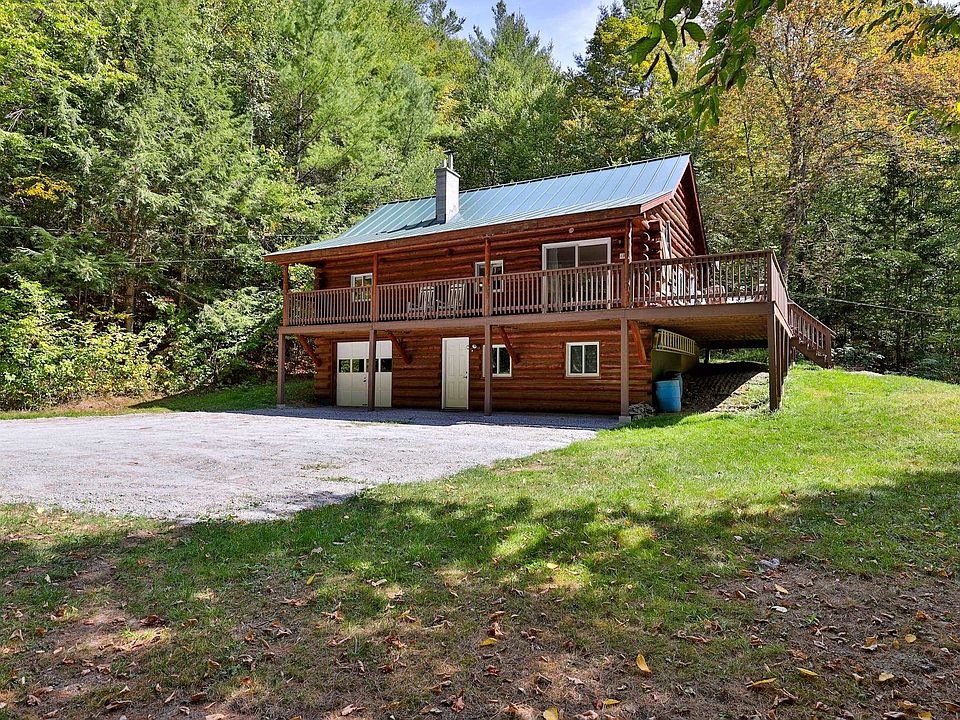 Nestled on 18 private acres along picturesque Blackmer Boulevard, this traditional log home offers the perfect blend of rustic charm and modern comfort. The open floor plan features soaring vaulted ceilings, a classic woodstove for cozy winter nights, and a spacious kitchen with a gleaming live-edge breakfast bar and updated hickory cabinetry. The loft-style primary bedroom overlooks the main living area, while a comfortable guest bedroom and full bath are conveniently located on the main level. A sunny southwest-facing deck and inviting covered front porch provide ideal spaces to relax and take in the surrounding natural beauty. The large unfinished basement with an integrated one-car garage offers excellent storage or expansion potential. Recent updates include a standing seam metal roof (2010), new exterior chinking (2022), new deck railings, fresh exterior stain, and a regraded and graveled driveway (2025). With 18 acres of forest and open land, you’ll enjoy peace, privacy, and endless outdoor adventure. Conveniently located near world-class skiing and riding at Killington and Pico, fly fishing on the White River, and miles of scenic hiking and biking trails, this fully furnished and equipped log home is ready for you to move in and start living the Vermont dream. Don’t miss this rare opportunity—schedule your showing today.