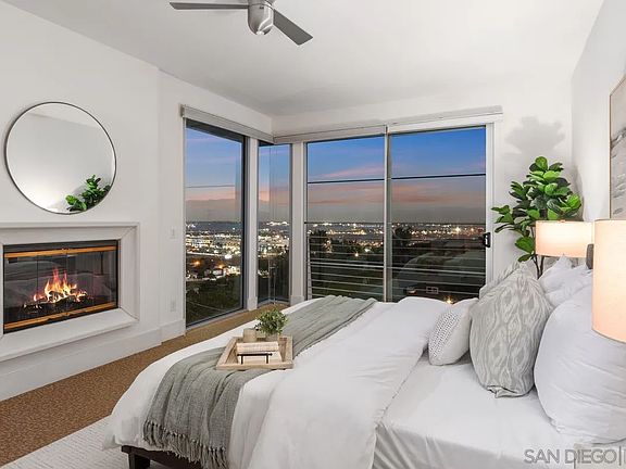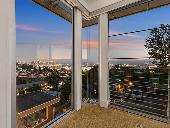 Incredible Views of San Diego Bay, Point Loma, Downtown and the Ocean! Gorgeous Contemporary home with newly refinished wood floors, windows galore in the LR, FR and MBR, high ceilings on both levels, 2 fplcs plus a gourmet kitchen with granite counters, center island, gas cooktop, high end appliances, range hood, warming drawer, and instant hot water. Fully paid solar with 2 Tesla batteries and a Tesla Car charger. Plus a 3 car attached garage (side by side parking and one space is a tandem). See supplement.