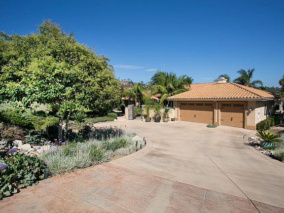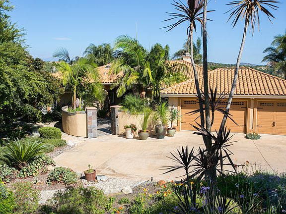 Visit www.1782JuniperRidge.com to see more of this gorgeous home. Nestled high in the hills of Fallbrook, west of the Pala Mesa golf course, sits the home of your dreams! Perfectly appointed inside and out, this 3440 sq' single story home has 4 bedrooms, including a second master, and 3.5 baths. Surrounded by 2.71 acres of professionally landscaped beauty with forever views of the southwest valley, this home makes the phrase 'resort style living' seem like an understatement. A huge private courtyard welcomes you at the front of the home and the grounds behind the home will leave you breathless. Entertain from your custom outdoor kitchen. Lounge and dine on the covered patios as fountains and a stone waterfall harmonize with the gentle cries of hawks and larger raptors riding the air currents overhead. Read, catch up on paperwork or share a drink with a friend while sitting at your charming palapa, which is wired for light and stereo. The ocean breezes that come through the nearby pass every afternoon will keep you cool and comfortable. Every tree and plant on the property is on automatic sprinklers; these gardens are places for relaxation not chores. And all utility lines are buried so there are no phone poles or wires to mar your view. Set away from the main house, you'll find a 24x16 shed (set on pad, not slab) and 125 Haas avocado trees just coming into their best production years (grove is 5 years old). The interior of the home is on par with the fantastic grounds. Enter this estate home through huge double doors into a custom foyer with coffered ceilings. Pass an extra large living room with vaulted ceilings and a fireplace. The formal dining room is big enough for extended family but small enough to somehow feel cozy. The open concept family room has a built in entertainment center, its own fireplace and flows seamlessly into the incredible custom kitchen full of all top end appliances. Two masters and two guest bedrooms, an oversized laundry room, wide hallways, and 8" baseboards complete this perfectly appointed home. Additional features include a whole-home water filtration system, central vac, fire sprinkles, dual heating and a/c units, security system, 3 car garage with sealed epoxy floors, finished walls, storage cabinets, solid garage doors.