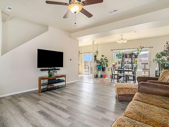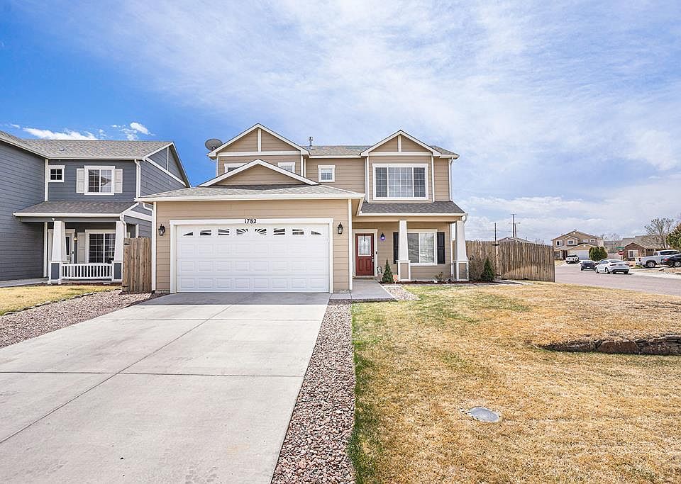 Located in Eagleridge Subdivision this home sits upon a sizable rear fenced corner lot. Walk into the main level living including living room, dining area, sliding glass door to the spacious yard and full kitchen with gas stove. A half bath and guest bedroom complete the main level. Upstairs offers a small loft or flex space perfect for the work from home office or sitting area. The Main Bedroom features a five piece bath on its own side of the upstairs and walk-in closet. Two more sizable bedrooms complete the upstairs. The backyard patio is great for entertaining or enjoying the outdoors. Other features include, new plank vinyl flooring in the living room, a tankless water heater and all kitchen appliances. A quick drive I25 will have you in Pueblo in minutes to the right and Colorado Springs in approximately 35 minutes to the right.