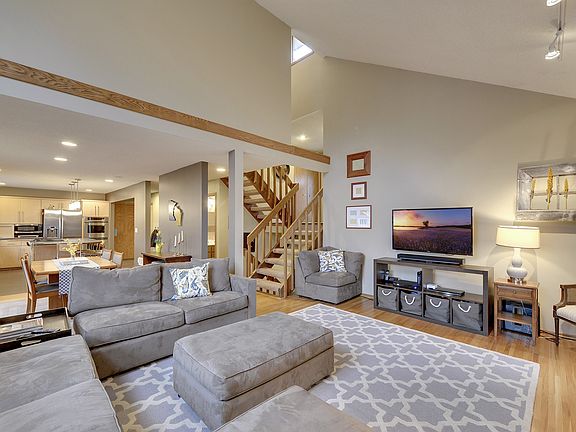 Bright and open soft-contemporary floor plan with s/s kitchen, vaulted ceilings, hardwood floors & more. 3 bedrooms up with 2 full suites; amazing master bath with high end finishes: quartz dual vanities, heated travertine tiled floors, jetted tub & separate shower. Loads of storage space with built ins and closets in the bedrooms. Finished LL walks out to wooded, private backyard with fire pit and 2 story playhouse! Incredible neighborhood and magnet school just 1/2 a block away. 2 city parks within 2 blocks of this home. Convenient location with quick access to Hwy 55, 100, 169 & I-394.