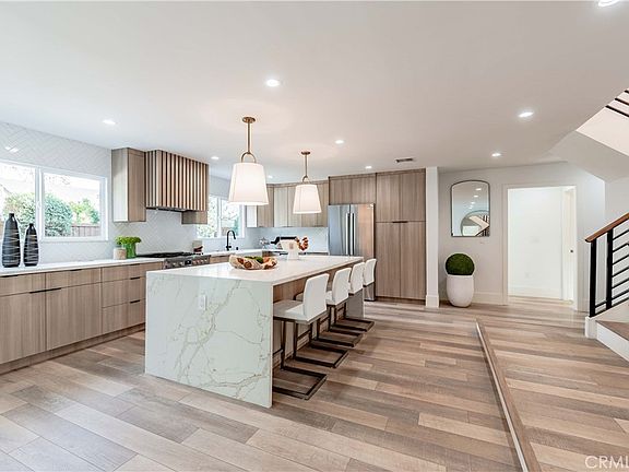 This stunning contemporary property has been meticulously renovated, reconstructed and completely redesigned. Gorgeous high end quality finishes throughout. Prime Mesa Verde "Upper Birds" location adjacent to two golf courses and large neighborhood park. As you approach the property you are greeted by the extremely attractive exterior of this home. Impressive entryway featuring white matt porcelain tile and grand double doors. Luxury white oak LVF flooring flows seamlessly throughout the residence. Fabulous kitchen with custom built European flat panel cabinetry. Massive center island with waterfall edge detailing. Sleek Quartz countertops and Herringbone backsplash. Bosch appliances complete the well-appointed space. The living area is completely open concept, great room design. Large dining area and a convenient built in butlers bar area with beverage fridge. There is a downstairs bedroom with adjacent bath that could easily be a second primary suite. Upstairs you will find an additional four bedrooms. The primary is grand in scale with a considerably sized walk-in closet. The Spa inspired bath has an elegant shower with designer selected tiles and premium fixtures. There is a lovely deep soaking tub for your enjoyment. Expansive double sink vanity with custom floating cabinetry and quartz counters. Beautiful rear grounds with lush lawns and mature landscaping. The large patio area has stone hardscaping and a built-in barbeque station with a beverage fridge. This property was taken down to the studs and reconstructed from the inside out. New electrical wiring and new electrical panel. New PEX plumbing and all new drain lines in slab. New Furnace and ducting. New Water Heater. Roof has been certified and comes with a warranty. New smooth exterior stucco. Construction was just completed, December 2024. All work was permitted and to code with the City of Costa Mesa. You are going to love this spectacular one-of-a-kind residence and all the thoughtful attention to detail that has been put into it.