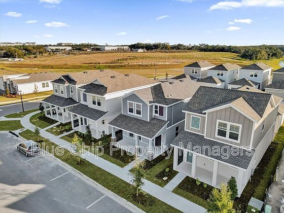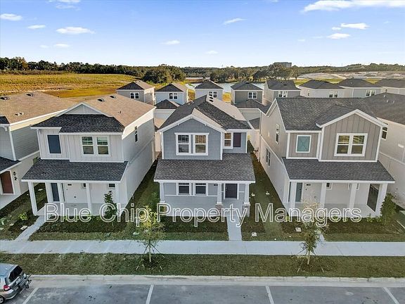 Welcome to this stunning new two-story home, offering a perfect blend of comfort and elegance. Designed to meet the needs of modern living, this spacious 4-bedroom, 3-bathroom home is a dream come true. As you enter the home, you're greeted by a large, welcoming foyer that sets the tone for the rest of the house. The foyer flows seamlessly into the expansive family room, which serves as the heart of the home, perfect for gatherings and relaxation. Just off the family room, you'll find a beautiful dining room, an ideal space for enjoying memorable meals with family and friends. The gourmet kitchen is a chef's delight, thoughtfully designed for those who love to cook and entertain. It features high-end finishes, ample counter space, and top-of-the-line appliances. Whether preparing a weeknight dinner or hosting a weekend gathering, this kitchen will inspire your culinary creativity. In addition to these common areas, the first floor includes a convenient bedroom, perfect for hosting overnight guests or providing a quiet retreat for other family members. A charming lanai, accessible from the main living areas, extends your living space outdoors, offering a peaceful spot to enjoy the fresh air and scenic surroundings. Upstairs, the home continues to impress with two well-appointed secondary bedrooms, each offering generous closet space and natural light. These bedrooms are perfect for children, guests, or a home office. The highlight of the second floor is the luxurious owner's suite. This expansive retreat offers a private oasis with plenty of space for relaxation. The attached full-sized bathroom boasts elegant finishes, a spacious shower, and a soaking tub for ultimate comfort. Whether you're unwinding after a busy day or starting your morning in peace, this owner's suite is designed to be your personal sanctuary. With its thoughtful layout, modern finishes, and ample living space, this home is perfect for those seeking both style and function. All Blue Chip Property Managers residents are enrolled in the Resident Benefits Package (RBP) for $50.00/month which includes liability insurance, credit building to help boost the resident's credit score with timely rent payments, up to $1M Identity Theft Protection, HVAC air filter delivery (for applicable properties), move-in concierge service making utility connection and home service setup a breeze during your move-in, our best-in-class resident rewards program, on-demand pest control, and much more! More details upon application.