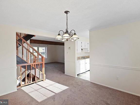 Great starter home! Centrally located to bus commute, and major highways. Walk in to three levels of spacious living waiting for you to put your personal touches on! Home freshly painted neutral inside throughout, brand new carpet and vinyl just installed. Bright large kitchen with room for a table. Separate dining room off of kitchen as well. Down stairs on lower level there is a Rec Room that exits out to nice back yard with a rebuilt large shed/work room for use. Features one full bath upstairs, half baths on main and lower levels. Come take a look today before its gone!