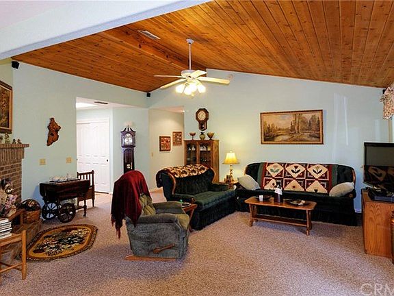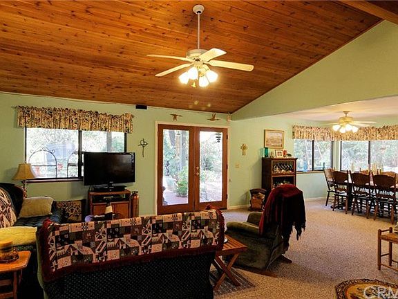 BEAUTIFUL SECLUDED FEELING 3 BEDROOM, 2 BATHROOM HOME ON ALMOST 1 ACRE! This private-feeling home has vaulted ceilings with cozy brick fireplace overlooking the huge, well maintained backyard & covered patio. Nice clean kitchen offers pull-out drawers, pantry, eating bar area & desk area. Lots of natural light from skylights to large windows & those views of the towering trees on this property gives an added beauty. The natural character of wood makes the facade warm and welcoming. Master suite offers dual sinks, walk-in closet, walk-in shower & access to covered patio area. Spare bedrooms have lovely window benches. Ceiling fans throughout the house. Laundry room with storage. 2 car garage. 2 sheds in backyard. If you are a nature person you will enjoy all year round the covered patio & looking at the beautiful yard. This home has so much to offer & you will not run out of storage!
