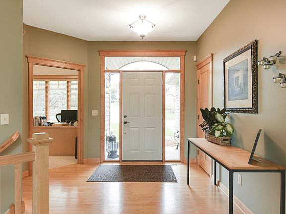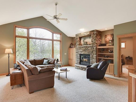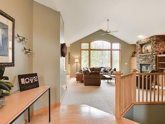 You won't want to miss this fantastic one level living on a private lot with a beautiful view of Scheuble Lake! No detail has been overlooked in this four bedroom, three bathroom home. The main level features the kitchen with large island and walk-in pantry, four season porch, maintenance free deck, heated garage, vaulted ceilings and the master bedroom with walk-in closet and master bathroom with heated floors. Downstairs you'll find a stone gas fireplace with beautiful built-ins!