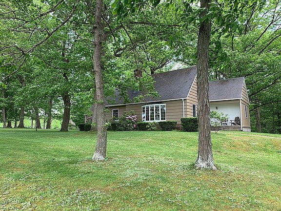 Charming Country Cape Cod sitting on a private 1.389 acre wooded lot. Offering 2,300 square feet of living space, this 3 to 4 bedroom and 2 bath home has plenty of space for the growing family. Beautiful remodeled custom kitchen with adjoining breakfast nook and formal dining room with French doors. Spacious formal living room with wood burning fireplace. Large family room with built in cabinetry and a door leading out into a screened in patio. Upstairs you will find 2 large bedroom and a full bath. Partially finished lower level with additional family/rec room. Plenty of storage areas and built in shelving. Main level laundry room. Detached 4 Bay Garage allowing plenty of space for lawn and garden equipment or workshop. Large attic loft in garage for additional storage.