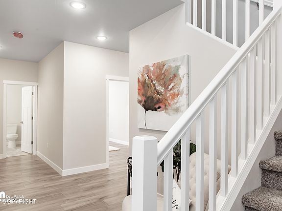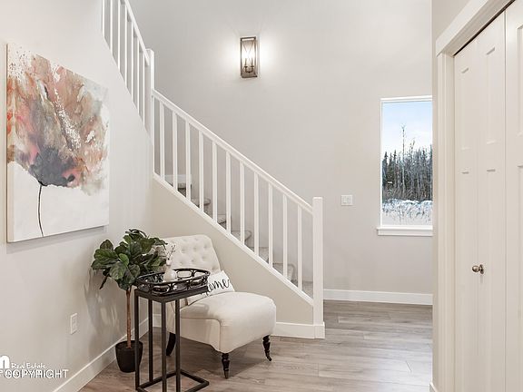 CONSTRUCTION COMPLETE! Largest lot in the subdivision! Surround yourself w/nature on this 3.58 Acre lot. Plenty of room for a shop, barn/horses, or whatever meets your needs. Loads of natural light floods into this 2-story entry w/covered porch and extra windows in the LR. Flex Room on main level. Kitchen w/quartz counters & Islandw/seating. 4 bdrms & lg. laundry up. Hand textured walls. Expansive master suite w/quartz counter, spa tub, large shower & walk-in-closet. Engineered to Anchorage standards. Trex decking. Lap siding all the way.