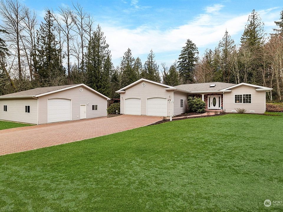 Sprawling rambler style home, tucked away on 3+acres (2 tax parcels), just blocks from Spring Lake. Upon arrival, you'll find beautiful paver driveway & lush landscaping. Next you'll notice a huge, detached shop w/heatilator fpl in woodshop area. Inside the home, experience extensive new & gorgeous wide plank hardwoods, new carpet & fresh interior paint. Wonderful island kitchen offers amazing amount of handsome Hickory cabinetry, plus built in bookshelves & breakfast counter. Family rm has woodstove for chilly nights (plumbed for gas) and is adjacent to kitchen. Luxurious primary suite, complete with 5 piece bath, 2 closets & access to heated Spa Room/Workout Room. 3 yr old roof, 2 yr old Mastershield gutters, 24x24 garage, vac system.