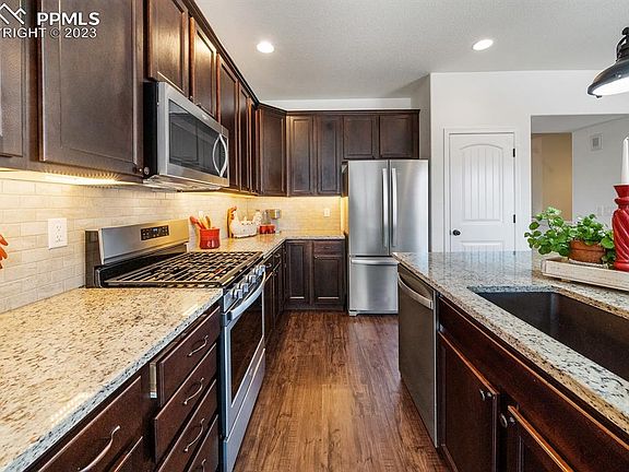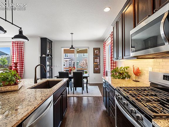 Welcome to your dream home! This stunning modern property boasts 3 bedrooms, 3 bathrooms, and exceptional features throughout. From the moment you enter the living room with its beautiful gas fireplace, you'll feel the warmth and coziness that this home exudes. The well-appointed kitchen is perfect for entertaining guests with elegant granite countertops, a gas stove, and stainless steel appliances. The master bedroom offers a tranquil retreat with a tray ceiling, walk-in closet, and a well-appointed ensuite bathroom with double sinks and a walk-in shower. Need a home office? You got it! The main floor is complete with a private office featuring beautiful barn doors. The finished garage includes a workshop area perfect for any hobbyist or DIY enthusiast. Downstairs, the basement bathroom is a true show stopper with charming shiplap and a walk-in shower. The property includes a nearby playground and a trail leading to Monument Lake. Step outside to the beautiful landscape in both the front and back of the house, creating a serene oasis that is perfect for relaxation. The covered patio with a ceiling fan is the perfect place to unwind and enjoy the tranquil surroundings while the outdoor fireplace creates a cozy atmosphere on cooler evenings. This is not just a house, it's a lifestyle. Don't miss out on the opportunity to own this exquisite property where luxury meets modern living. This home is also plumbed for A/C.