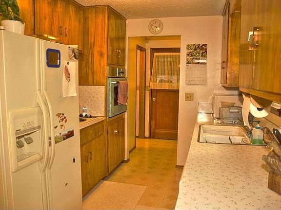 Clean rambler on large lot--great location. Hardwood floors, French doors to back yard covered patio, vinyl windows and oversized garage. Back yard fenced with 2 sheds. Not a short sale!