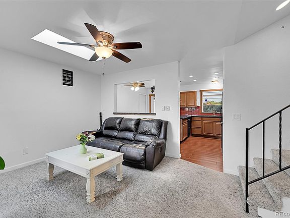 Welcome home to this three bedroom, two bathroom home in Aurora Highlands! Upon entering, you are greeted by the living room. Enjoy the plush carpet flooring, natural lighting and easy access to anywhere in the home. The gourmet kitchen is every chef's dream and offers beautifully finished hardwood flooring, spacious countertops and ample amounts of cabinetry. Plus, all appliances are included with this home, talk about move in ready! Enjoy the dining area located right off of the kitchen, great for entertaining. The primary bedroom offers hardwood flooring, large windows allowing light to shine in and a ceiling fan. Plenty of space for any furniture design layout you can imagine and a sliding door allowing access to a private deck, the perfect oasis. A second bedroom and full bathroom complete the upper level. But wait...there's more! Head downstairs to your finished basement where you will be greeted by a family room. Plush carpet flooring, large windows allowing light to shine in and a beautiful fireplace with surrounding brick, perfect for keeping you warm on those chilly Colorado days! The third bedroom and a powder bathroom are also found in the basement, perfectly located! The laundry room completes the lower level and offers plenty of room for any additional storage needs. Both the washer and dryer are included with the home and are ready to tackle any mess that may come your way! Head outside to your backyard oasis and unwind on your spacious covered patio or set up some yard games in the large grass area. Put your green thumb to the test with the built in garden space and enjoy the additional storage space from the shed, how convenient! Easy access to just about anywhere including I-225, I-25, E-470, Downtown Denver, Denver Technology Center and Denver International Airport. Just a quick drive to multiple parks and trails including Highland Hollows Park and Horseshoe park as well as ample amounts of shopping, dining and entertainment options. Welcome home!