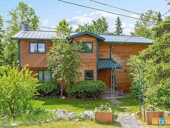This very inviting home sits at the end of the street. Chugiak elementary and high schools are with in a short walking distance from the home. The home has a green house, shed and RV parking. The bonus living space off of the upstairs den has been used as a office, extended living space and a bedroom. There is a spacious den with built in gun case upstairs. This home has a assumable VA mortgage. The kitchen has a good of amount of cabinet storage and boast granite counter tops. The bathrooms have been updated as well. Come and enjoy the feel of this comfortable home. To drive to the greenhouse and shed at the bottom of the hill, please take Shims to the first street past Kamkoff. Which will be Pioneer. Turn right on Pioneer and take it to the first right which is Cline Street and follow it to you are almost at Kamkoff to your left. The buildings are on the right side of Cline.