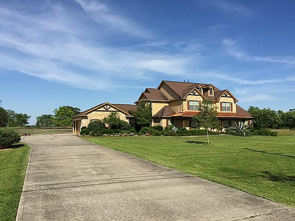 Custom built executive home on 1.93 unrestricted acres located ~30 minutes from downtown Houston or the Gulf of Mexico. Features downstairs master suite, office, formal dining, breakfast area, chef's kitchen, huge living w/ fireplace, utility, and guest half bath. Upstairs are three bedrooms, two full baths, study area, and large family room. Enjoy the outdoors on the screened patio, covered balcony, or screened breezeway. Landscaped, established garden & 13-zone irrigation system.