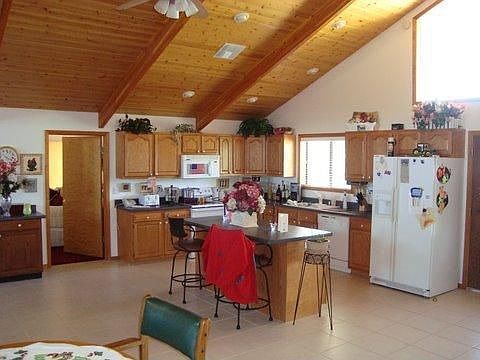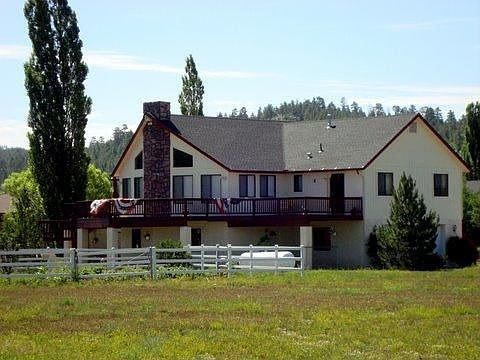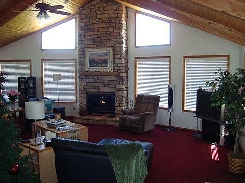 Fantastic panoramic 360o views of the golf course and forest in this Beauty! 2624 sq.ft chalet with 3 BR; 2.5 BA; check out the fireplace in this beautiful master suite which exits out onto the decks for privacy. Note the warm and golden T&G vaulted ceilings throughout the huge living area with Fireplace; wood-framed dual pane windows; enjoy this split plan affording more privacy for the Master BR; 2BR; 1 BA and a laundry room on the opposite side of the house. Check out the family room downstairs plus a half bath. The garage is 6 car! The views are panoramic; two driveways; a fenced-in garden. If you want to see the clearest, brightest star-filled night sky just step out onto one of the two decks!